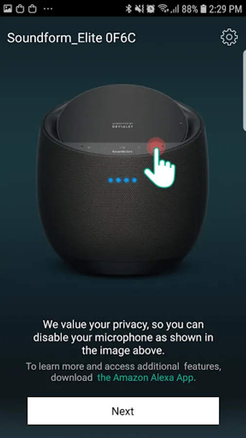 The Belkin SOUNDFORM app will setup WiFi and Alexa (where available) on SOUNDFORM ELITE with Alexa and AirPlay 2 speakers.