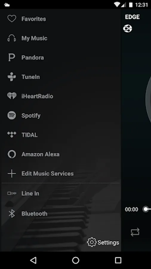 The EDGE app controls Wi-Fi enabled speakers that are part of the EDGE speaker system by Sharper Image.