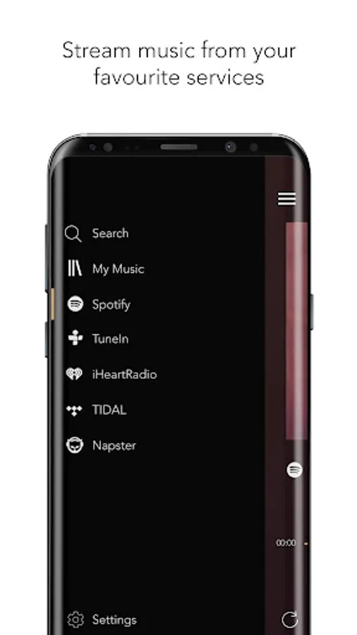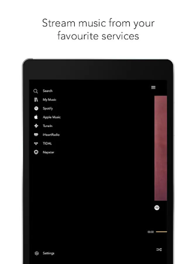 The app features built-in services from TuneIn, Spotify, TIDAL, Apple Music, iHeartRadio, Napster as well as the ability to play your own stored music from inside the app.