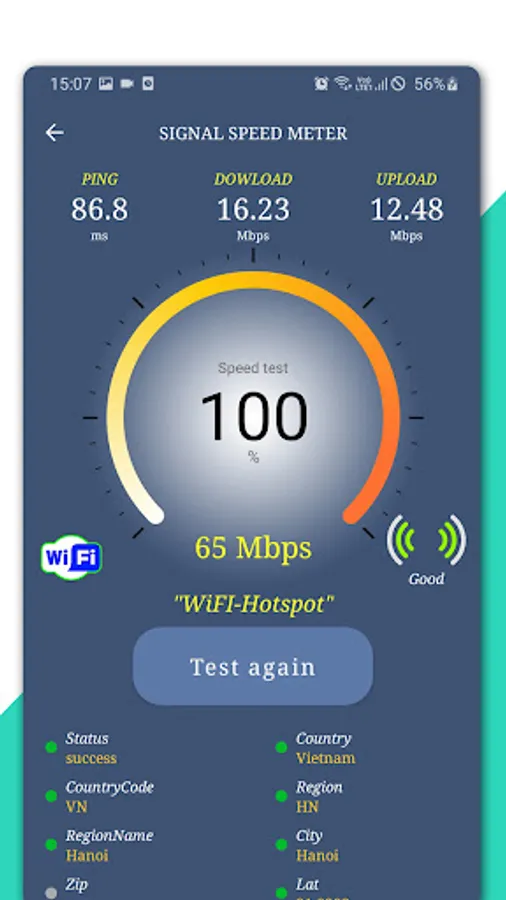 - Meter internet speed for wifi signal and cellular: 5G, 4G, LTE, 3G, HSPA+.