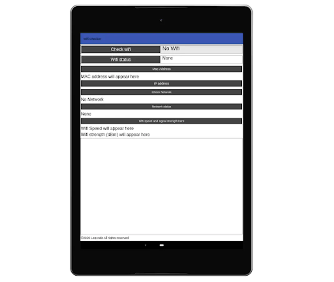 This wifi checker, which is self-explanatory in the name, would allow you to check your wifi and your network, including whether you have a fast or slow connection. It would also allow you to check your IP address and MAC address