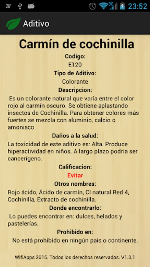 This application does not seek to stop eating, but if you regules meals with too dangerous additives, in addition to inform you of possible damage in the short or long term, also includes information on which countries are prohibited as well as each additive is obtained (from whence).