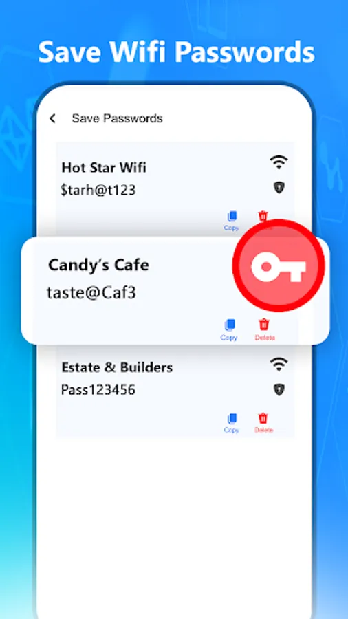 To make you phone internet secure, you can generate strong passwords for your mobile hotspot and make your internet secure. The WIFI password manager provides the retrieving passwords that bring easiness to its users when they need the password.