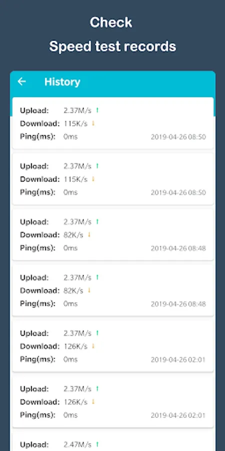 ★ Save the past results of Internet speed test automatically.