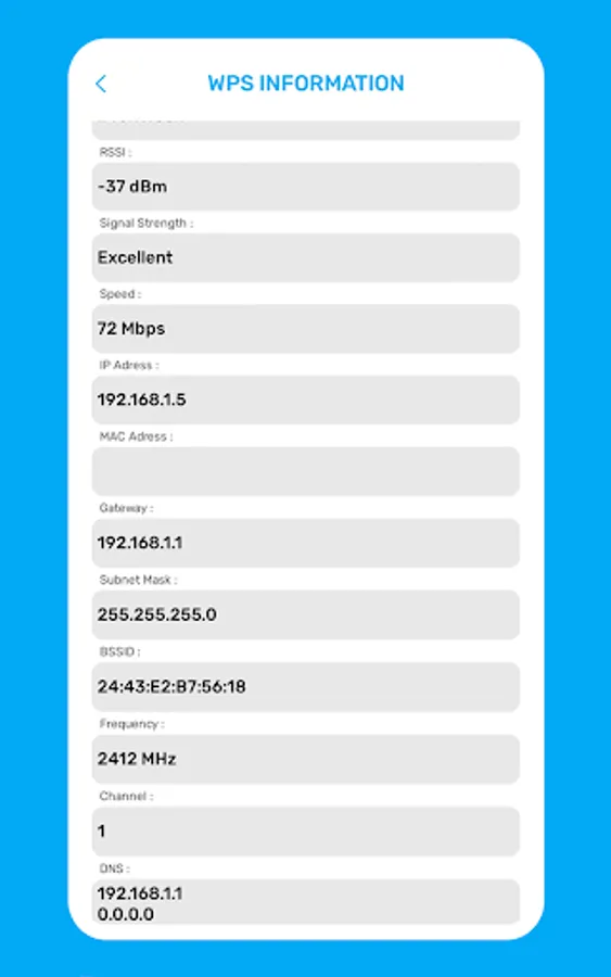 WPS WiFi Connect - WPA Tester app you can get all the information about the WPS WiFi Connect it will include the information like signal, Speed, timezone, City, region, country, coordinate, SSID, Internal IP, MAC address, Broadcast Address, Mask Gateway and local host or many more easily you can get information about this app WPS WiFi Connect - WPA Tester.