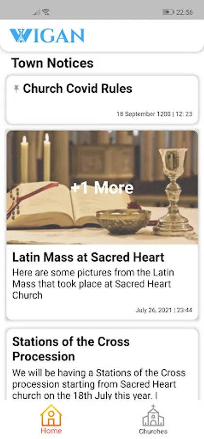 The Wigan Churches app provides information about all of the Catholic churches in Wigan in one place. Receive Town notices which are posts containing information relevant to all people in Wigan.