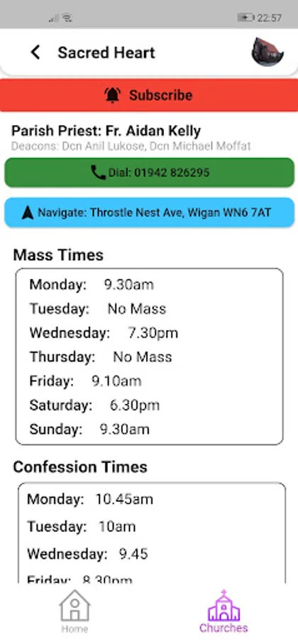 Church profiles contain mass times, confession times, exposition times and times of any other event which takes place in the church.