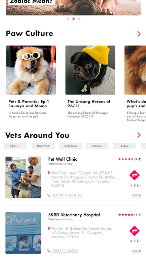 - Find vets, groomers, and more in your vicinity, filtered by distance, prices, and services provided.