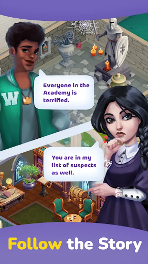 Have a wonderful journey with Wendy, play a merging game, solve casual puzzles and get rewards. No matter if it’s Wednesday or Saturday. You are going to investigate another mystery story at the magic school. Let’s get started!