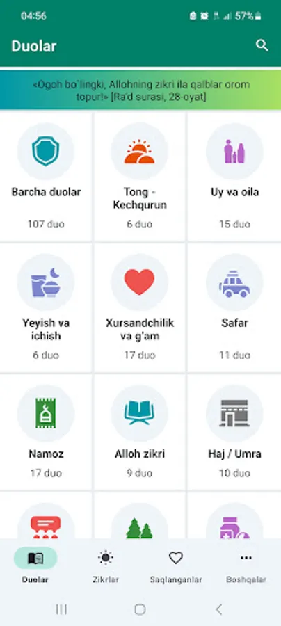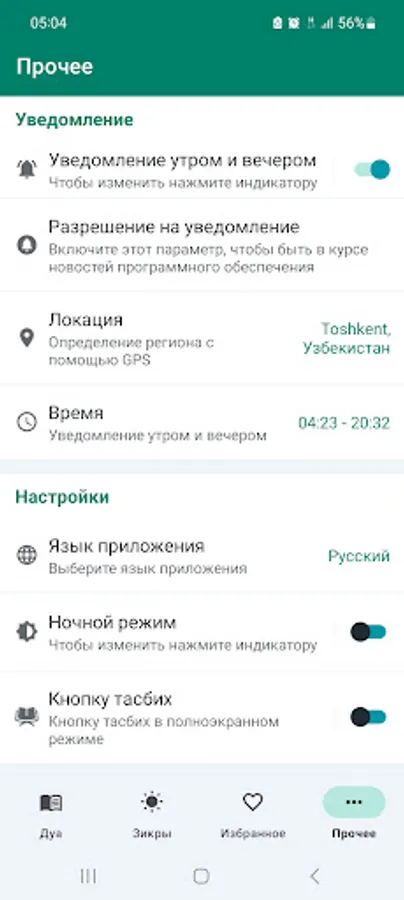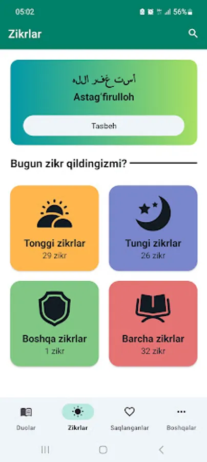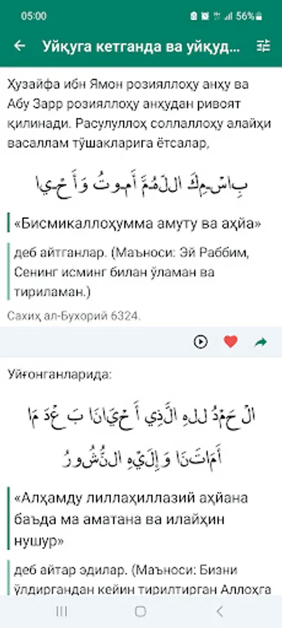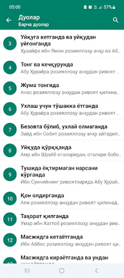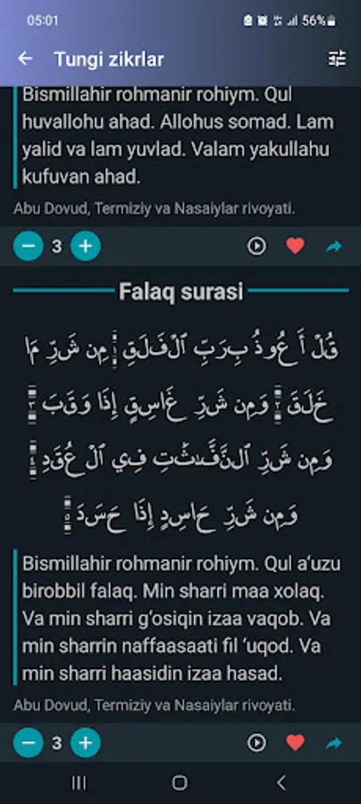 *Bundan tashqari dasturda unlab dhikr va tasbekhlar mavjud.