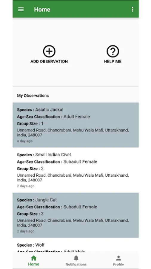 Mobile App for wildlife census in the state of Haryana. The app is developed and hosted by Wildlife Institute of India