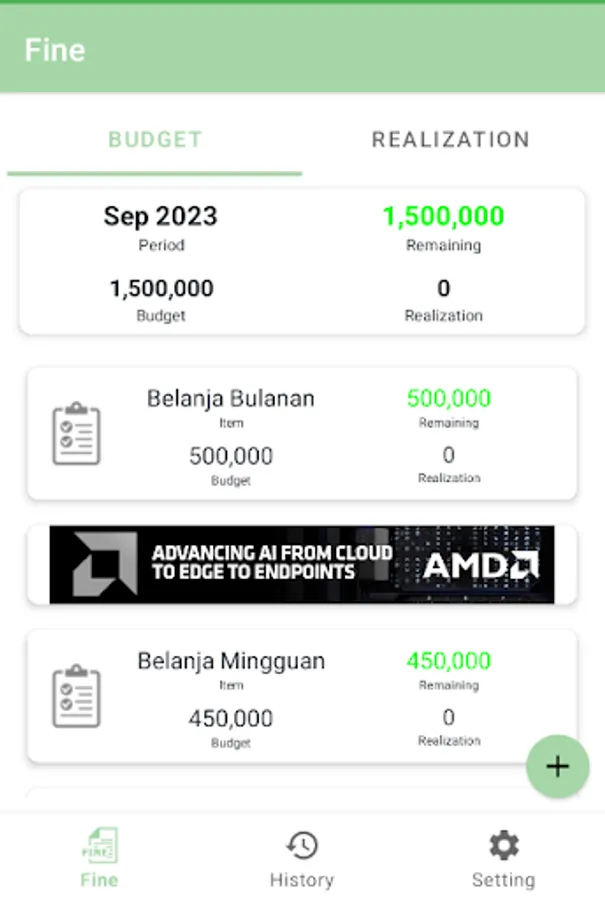 Finance ePlan or Fine is an android-based application that you can use to do the planning and recording of your expenses each month. By planning and recording your monthly expenses, you can better manage your expenses according to your income.