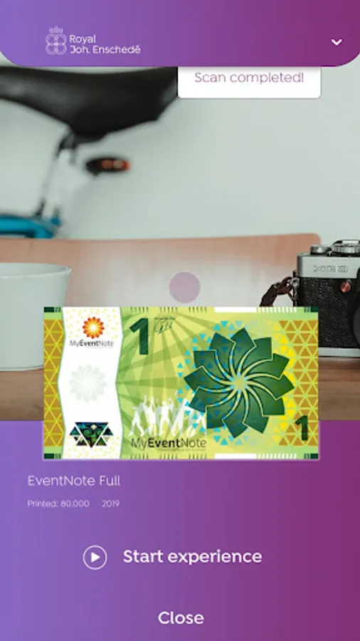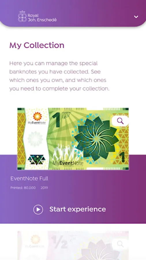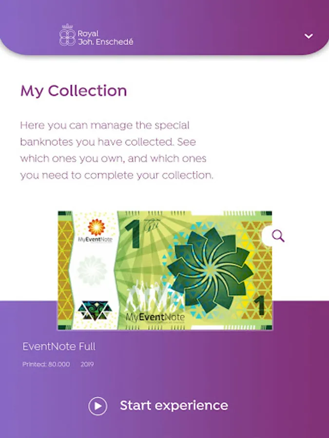 - Scan your Royal Joh. Enschede banknotes to add them to you collection in the app
