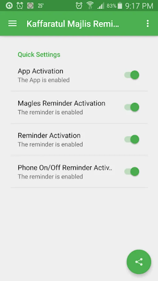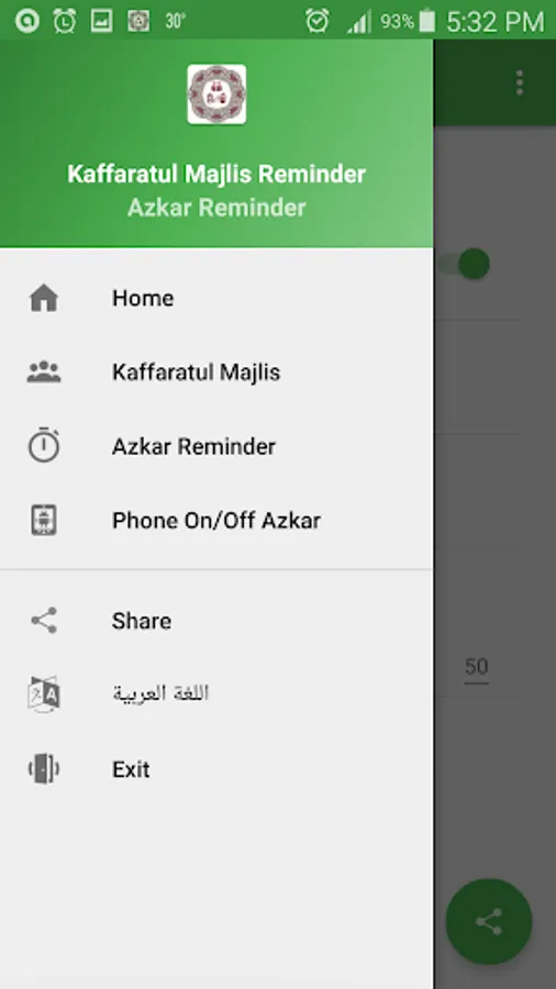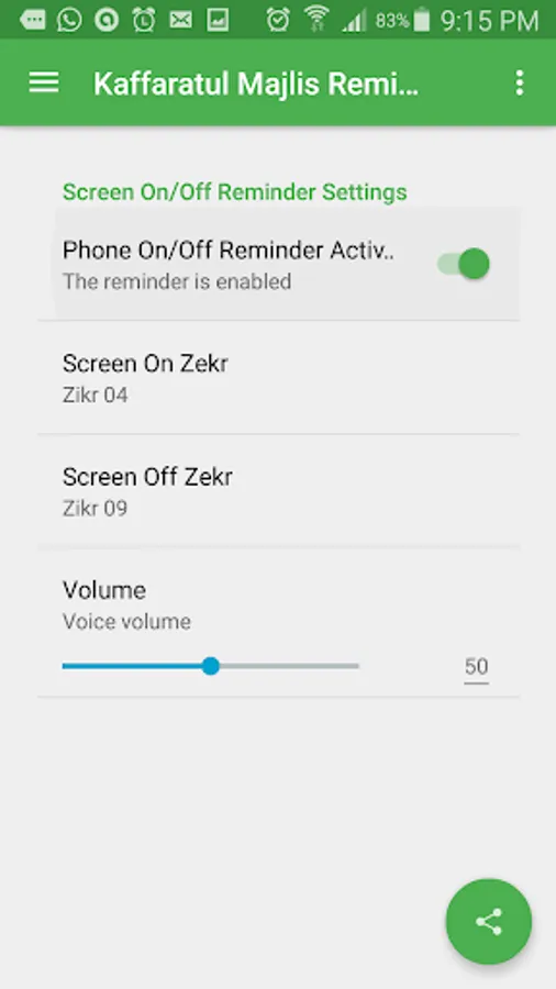 يقوم التطبيق ايضا بتذكبرك بذكر الله عند فتح او غلق الهاتف