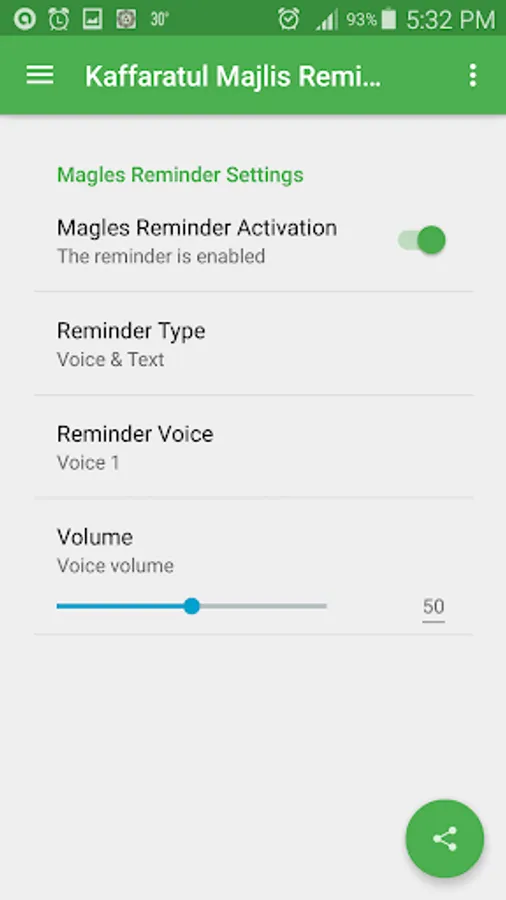 The App also include Azkar Reminder that always remind you to praise to Allah by auto azkar notifications the shows periodically .(text, voice or both)