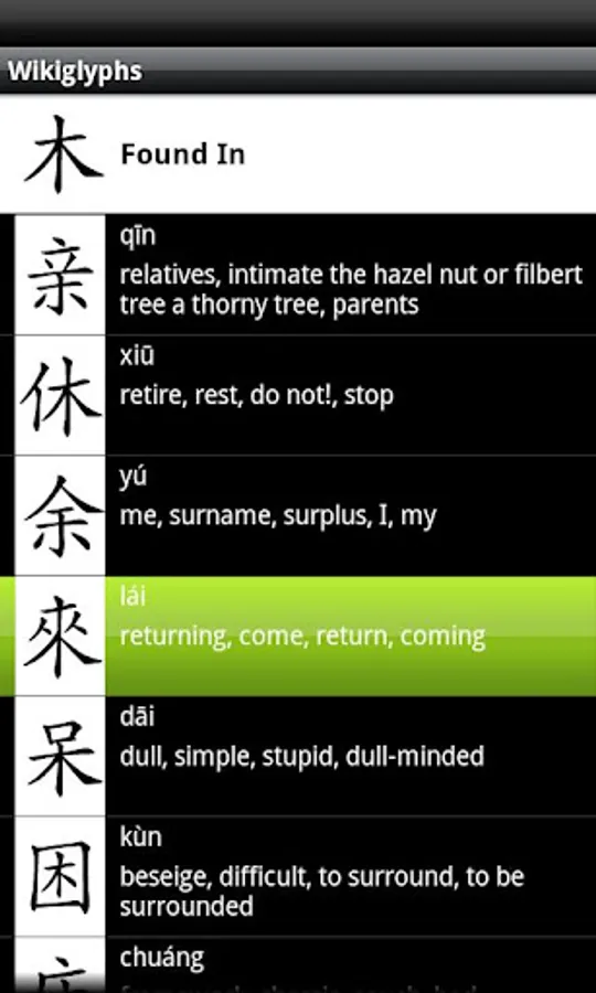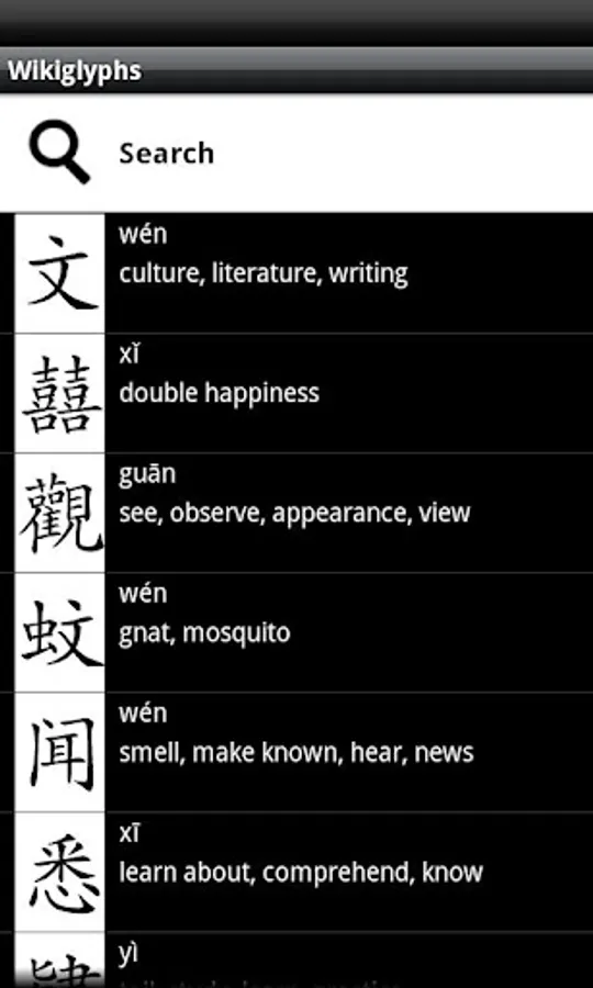 Whilst beginners will find it useful navigating characters through the "flash card" style interface and listening to pronunciations; the application is targeted towards users with a novice level of the Chinese language and up.