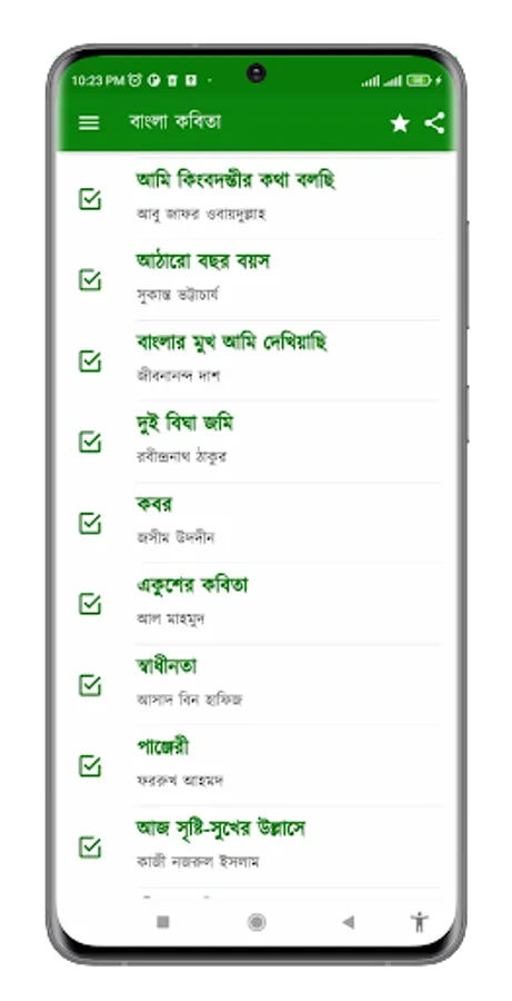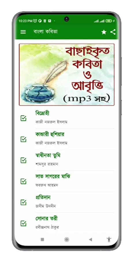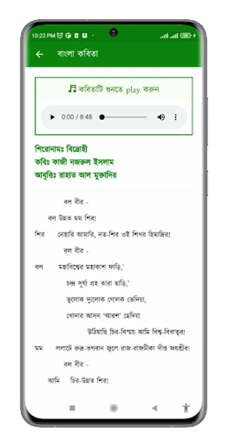 So the WikiReZon channel has created for you some impeccable poems of popular poets and writers with complete audio and lyrics. In this app, a lot of poems have been added including Vidrohi, Sonar Tari, Kandari Hushiar, Kabar, Dui Bigha Zami, Panjeri, Kuli Mazur, Nakshi Kathar Math etc.