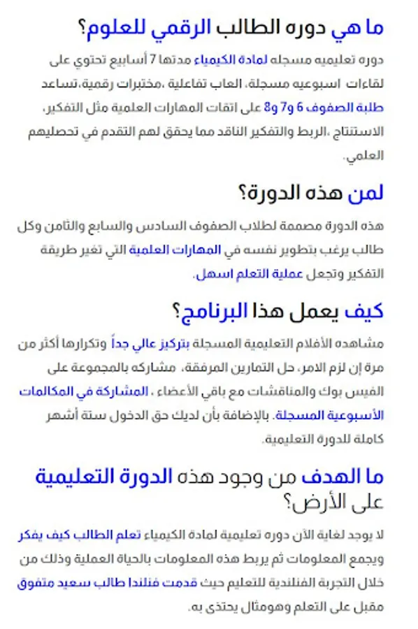 So far, there is no educational course for chemistry that teaches the student how to think and gather information and then link this information to practical life, through the Finnish experience of education, where Finland presented a happy, superior student who is about to learn and is an example to follow.