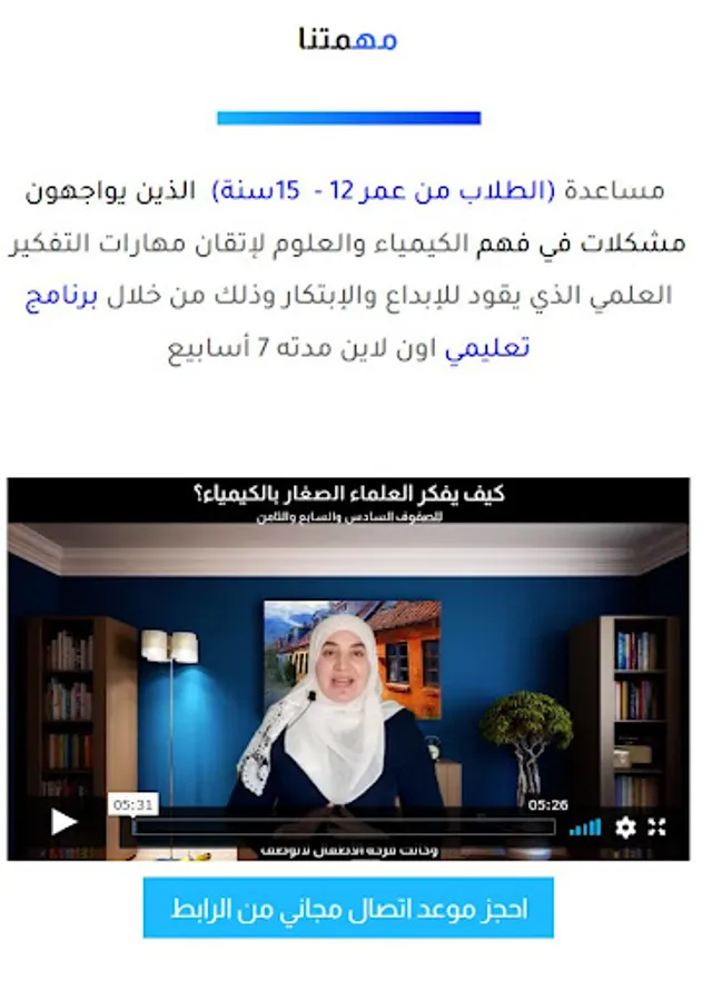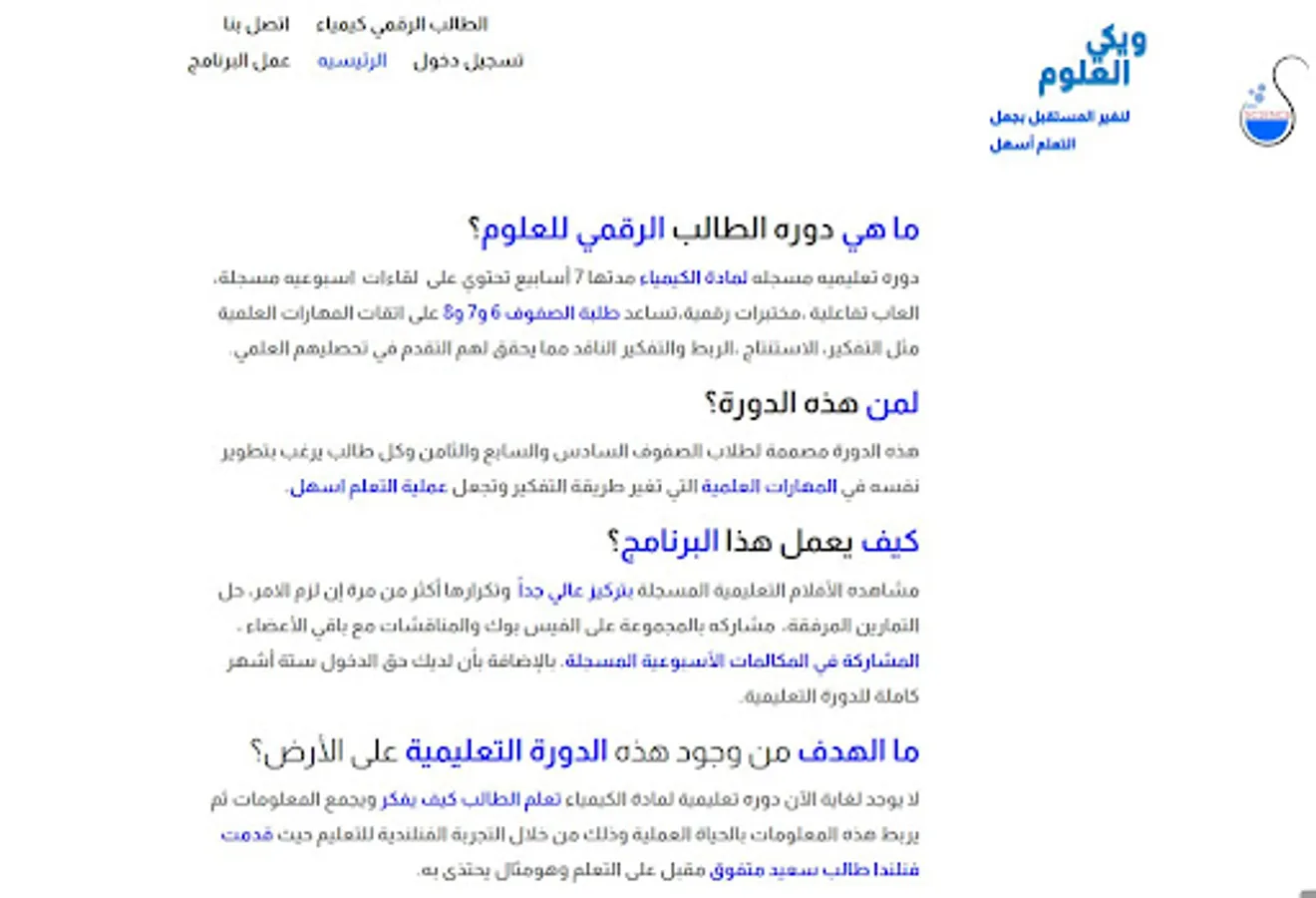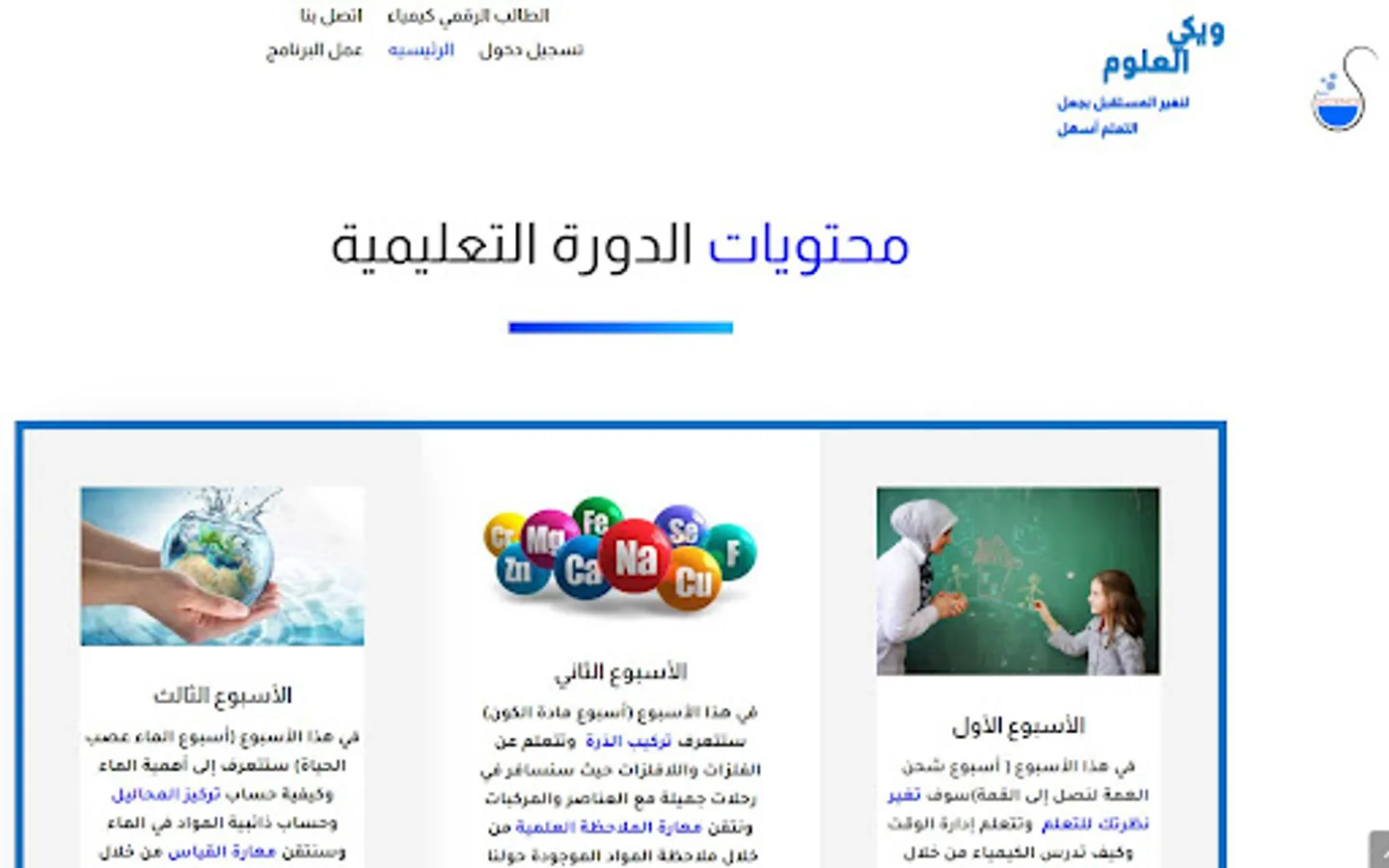 A 7-week recorded educational course for chemistry that contains recorded weekly meetings, interactive games, and digital laboratories. It helps students in grades 6, 7 and 8 to master scientific skills such as thinking, reasoning, linking and critical thinking, which leads them to progress in their scientific achievement.