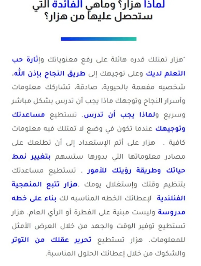 Hazar has a tremendous ability to raise your spirits, arouse your love of learning, and direct you to the path of success, God willing. He is a lively, honest person who shares information and secrets of success and directs you what you should study directly and quickly and why you should study. She can help and guide you when you are in a situation You do not have enough information Hazar is ready to inform you of its sources of information, which in turn will contribute to changing your lifestyle and the way you see things.You can help you organize your time and make use of your day.Hazar follows the Finnish methodology to give you the appropriate plan for you based on a well-thought-out plan and not based on instinct or Public Opinion Hazar can save time and effort through optimal presentation of information Hazar can free your mind of tension and doubts by giving you appropriate solutions.