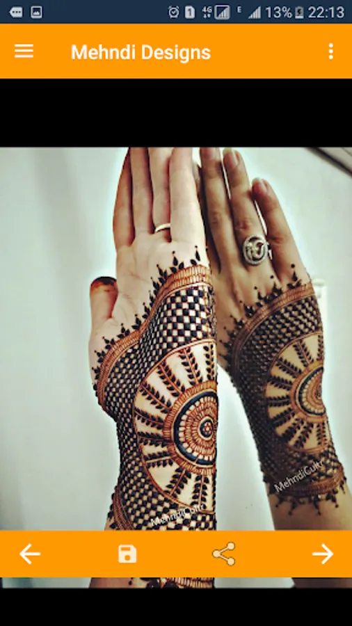 This app contains Mehndi Designs completely offline such as Bridal Mehndi Designs, Eid Mehndi Designs, Diwali Mehndi Designs all Trending Designs of Indian and Pakistani Mehndi ,Finger Mehndi Designs, Kids Mehndi Designs, Back hand Mehndi Designs ,Arab Mehndi. Diffrent categories like Hand Designs, Foot Designs ,Henna Mehndi And tattoos, Henna Patterns.