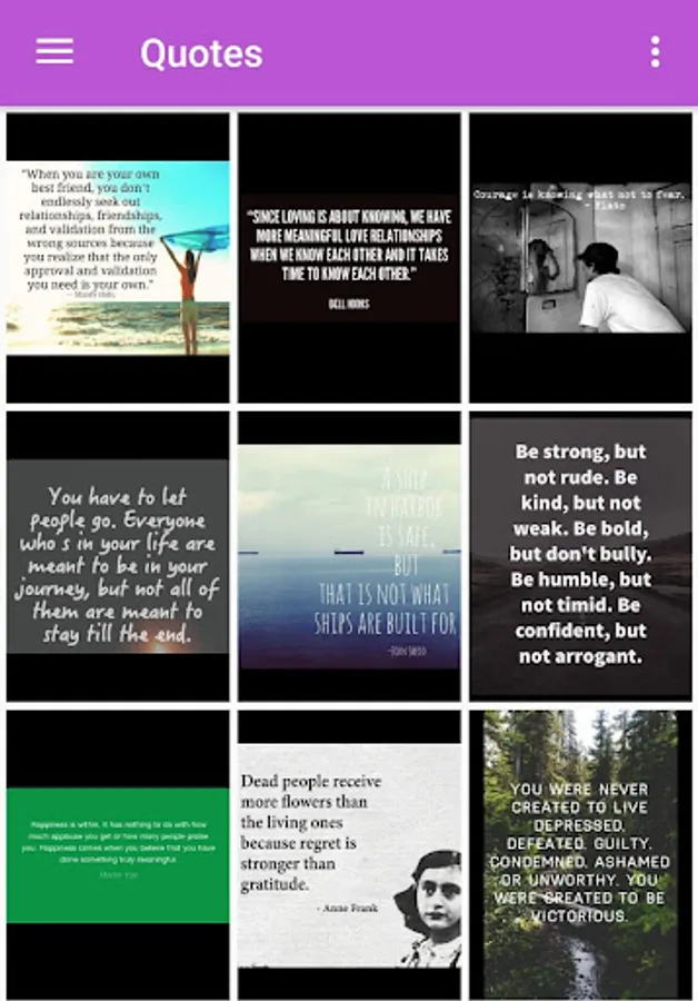 This app contains motivational quotes, love quotes, friendship quotes, best status and quotes, offline quotes, beautiful quotes, english quotes, deep meaningful quotes,quotes and sayings And much more