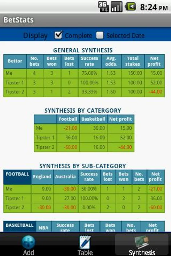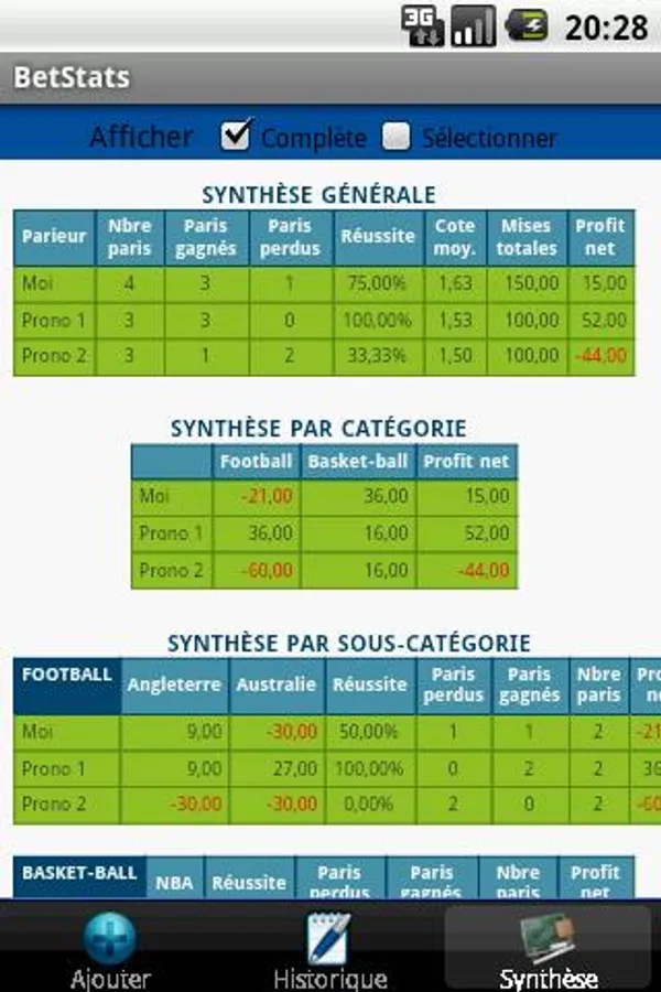 With the help of syntheses , you can analyze in which categories and sub-categories you are most efficient and compare your choices with your tipsters.