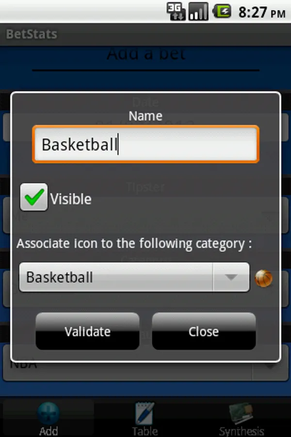 A default database is created when the app is used for the first time, for example you’ll find in the Football category the sub-categories England, France… but you can easily change these or change a free category in order to have the Champions League as a category and Tournament Bets, qualification as a sub-category.