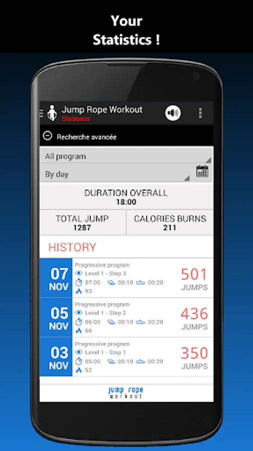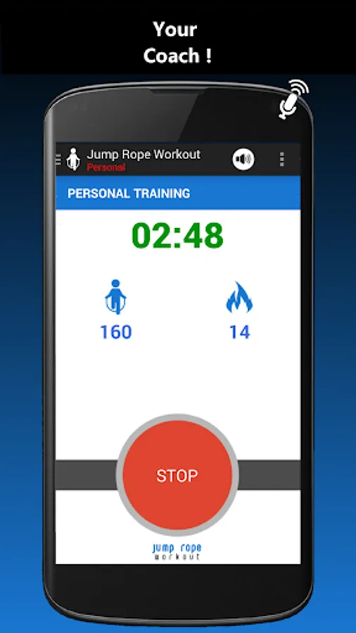 An audible coach (in English) lets you know each minute how much time is remaining, when to jump and when to rest.