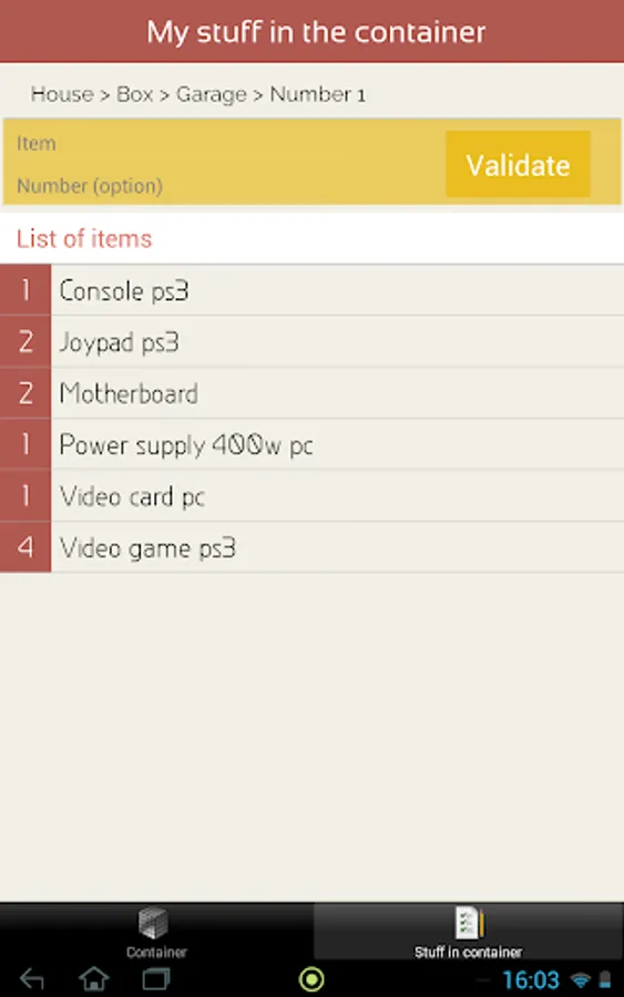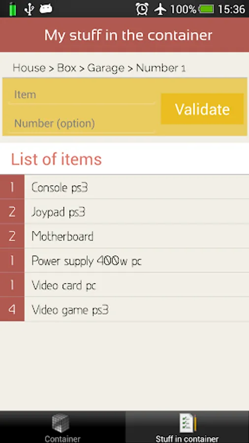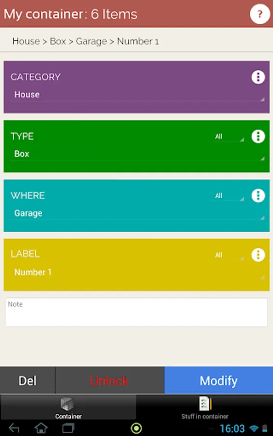 It allows you to carry out the inventory of your things by use of 4 different feature to define your container :