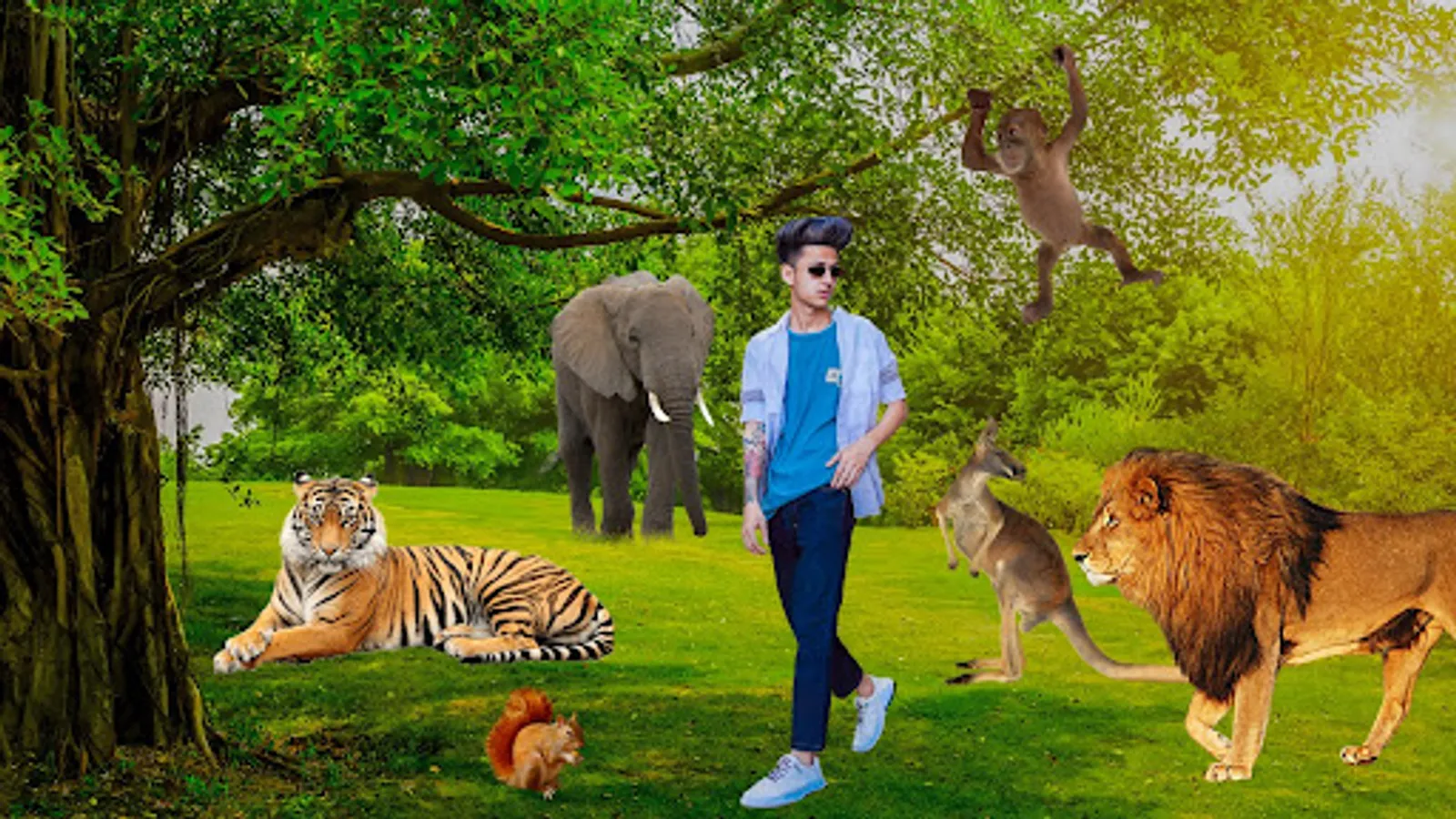 Wild animal photo editor has tiger, lion, bear, zebra, giraffe etc pictures and stickers. Stickers can be resized, flipped, or attached anywhere on your selfies and they will look like original photos taken with those animals.
