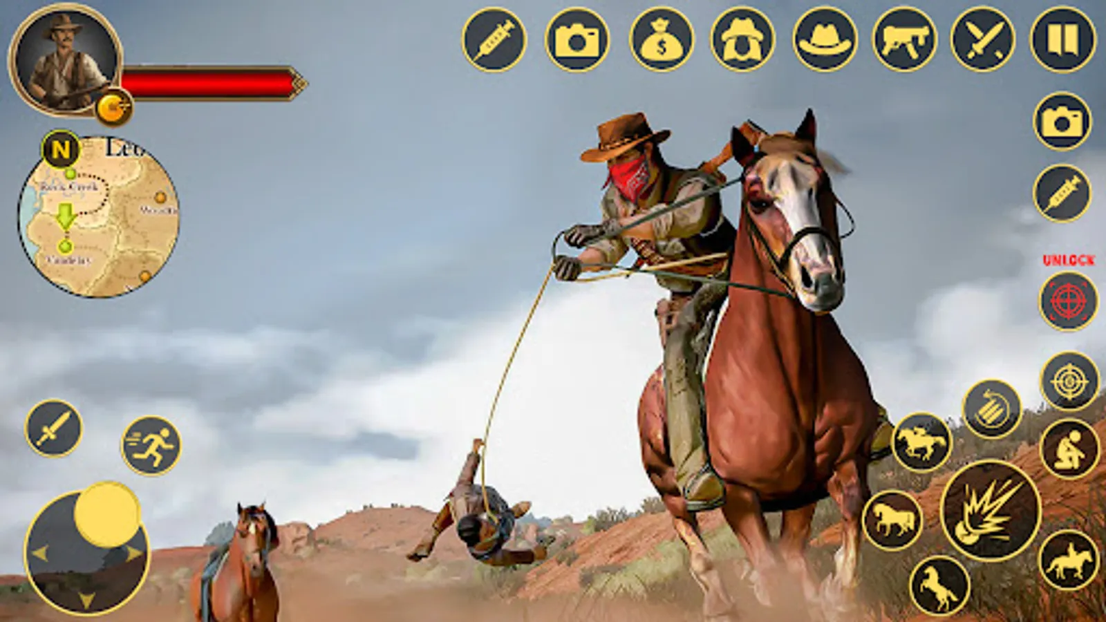 Play as a west gunfighter of wild west cowboy redemption in the west world and Explore horse attack rodeo games.