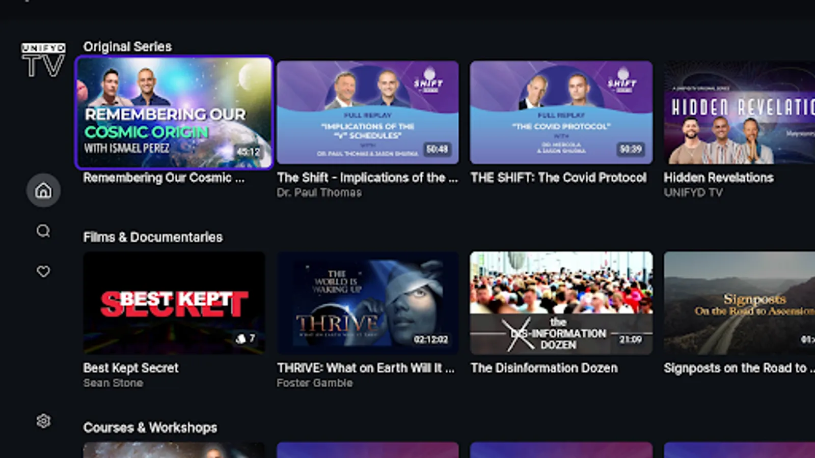 UNIFYD TV has a rapidly growing library of over 1,000 titles including original series, eye-opening documentaries, consciousness-expanding workshops, guided meditations and so much more!