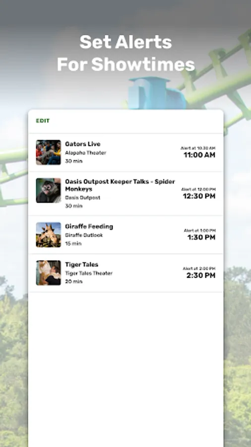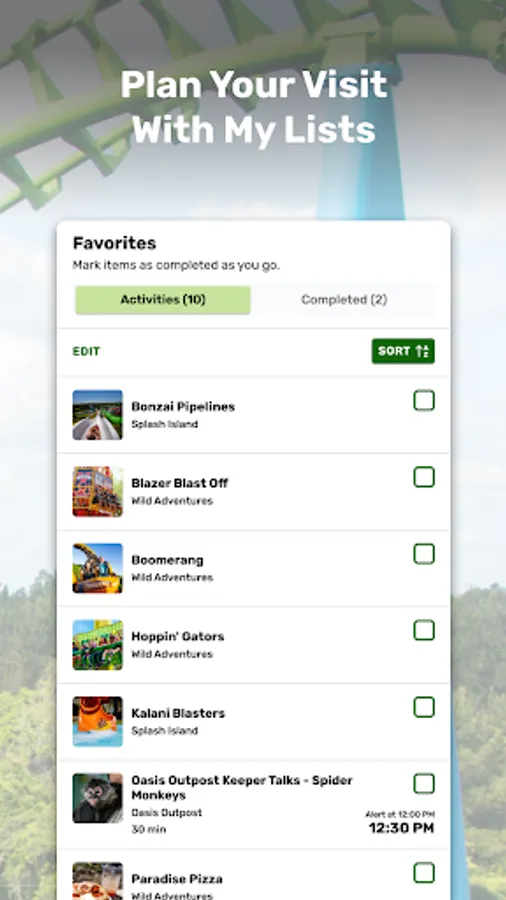 The Wild Adventures App ensures you maximize every moment with unique features such as: