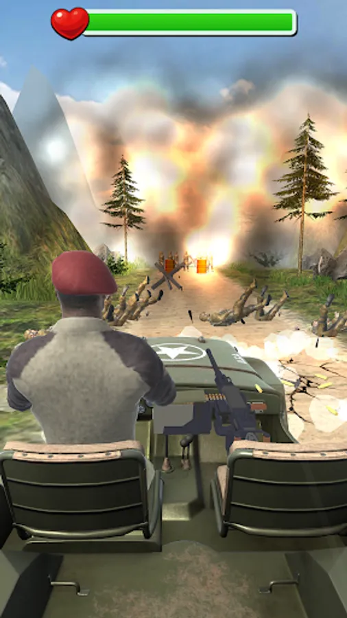 Drive vehicles to plow through and shoot down thousands of enemies.