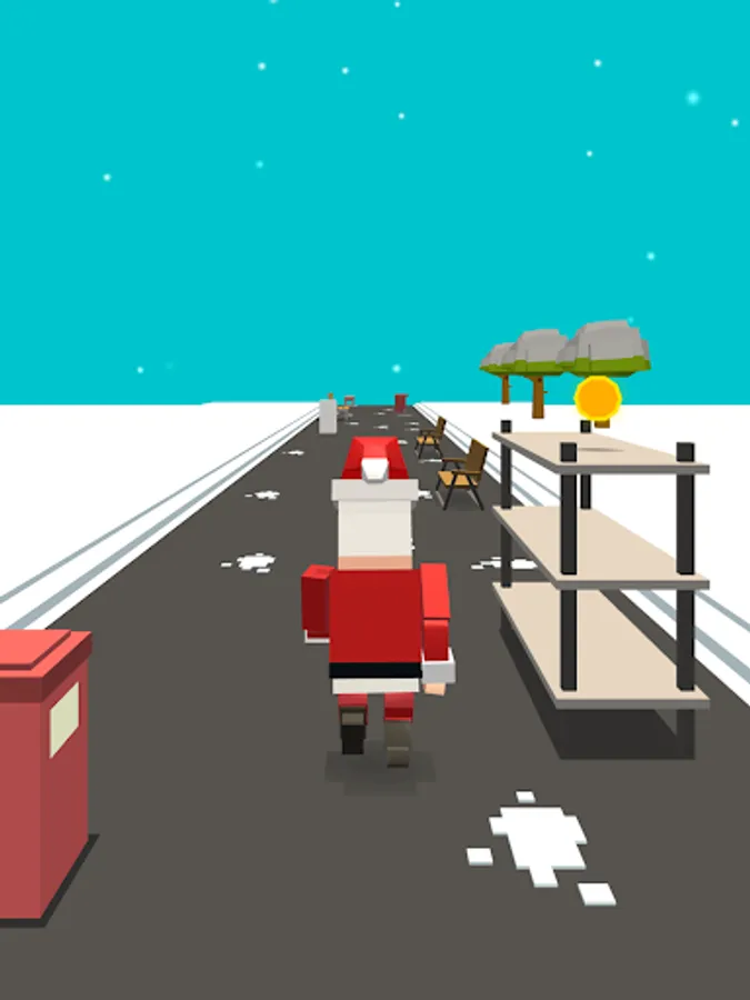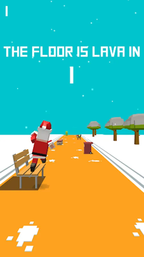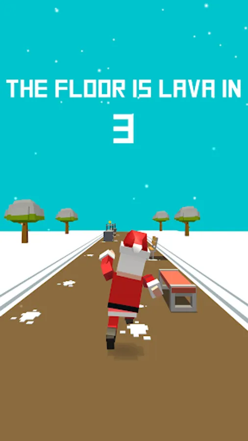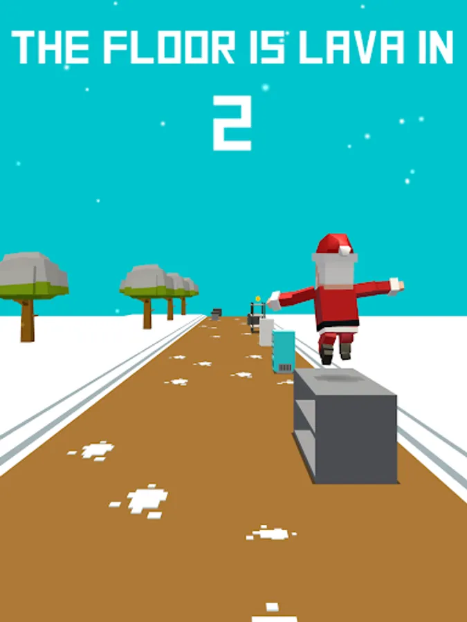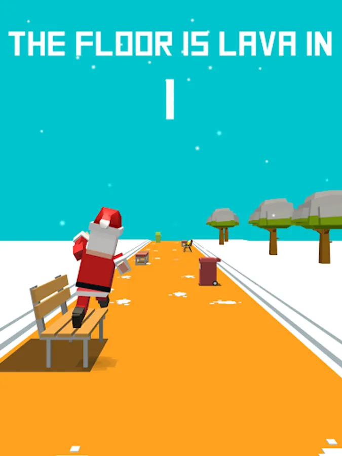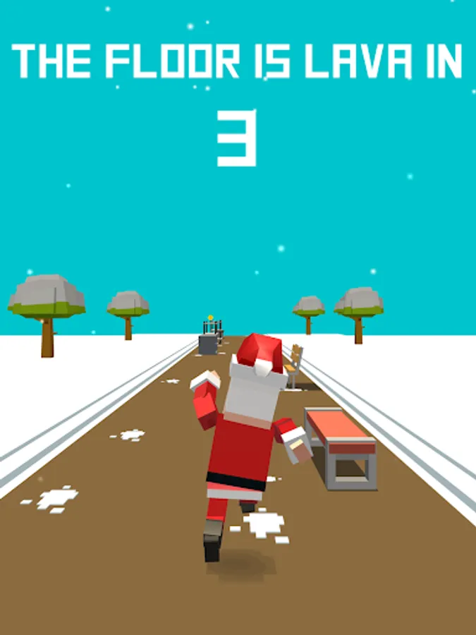Jump before the snowy floor turns to lava and help Santa reach his cabin!