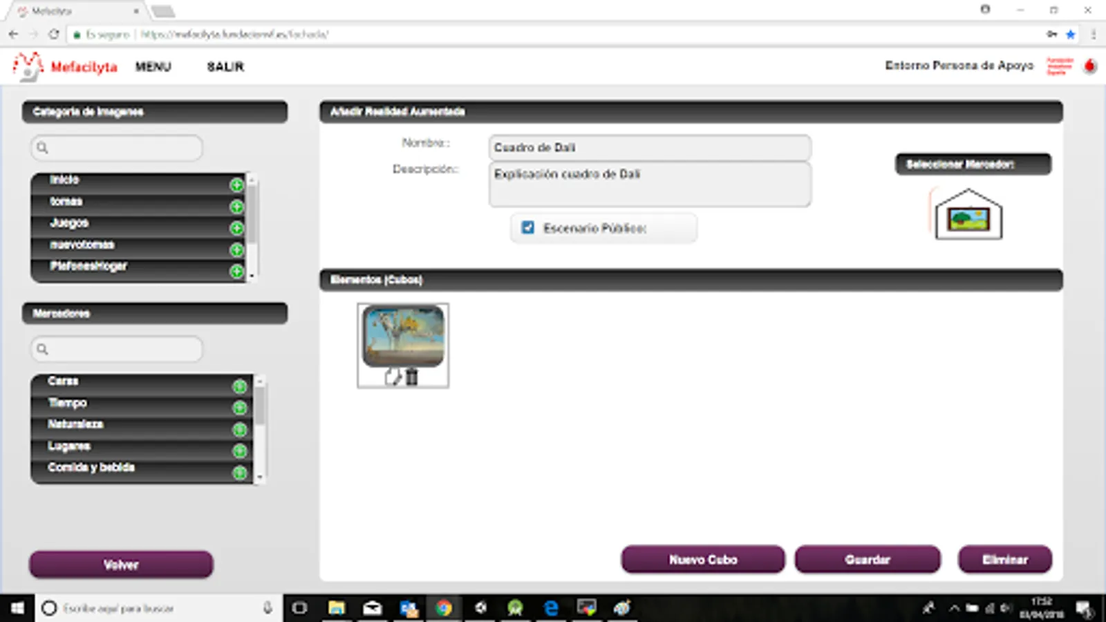 The application allows visualization and building scenarios augmented reality platform configured from Mefacilyta