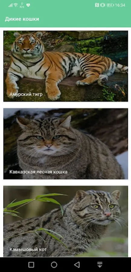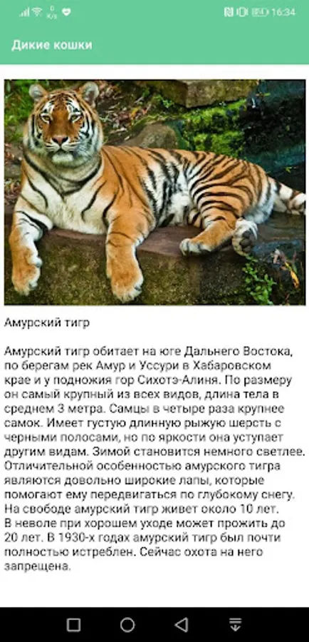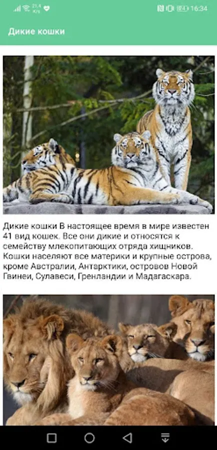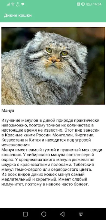 In our application you can get acquainted with some representatives of both rare and common representatives of the feline family.