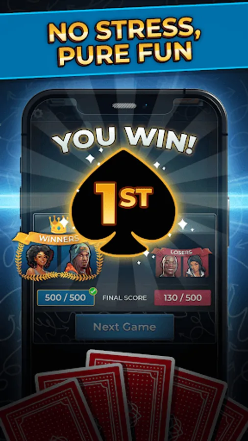 Much like the peaceful joy of playing games such as Uno, Gin Rummy, and Cribbage, Spades Fever offers a fun, nostalgic and engaging experience for players who cherish the simplicity and comfort of classic card games. Every play, every move, every strategy is a gentle dance of intellect and relaxation, allowing you to engage at a pace that's entirely yours.