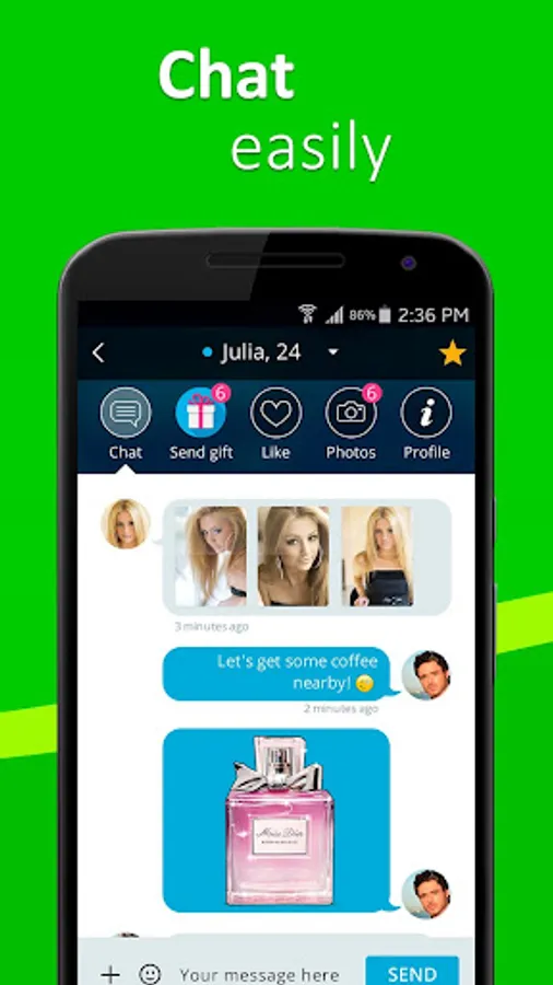 - send photos and smiles, voice and video messages, draw your own pictures and chat with those you are interested in
