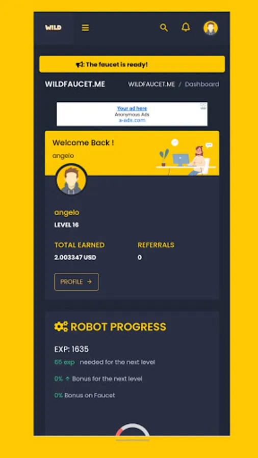 Upgrade your [WILD ROBOT] to become stronger, each time it is upgraded it will generate more energy. All you have to do is complete the tasks from upgrade section.