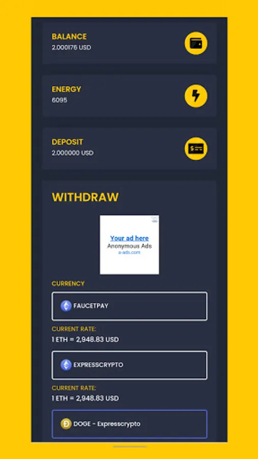 Earn energy by doing various tasks such as cloud faucet, energy faucet, ptc or you can complete the upgrade section.