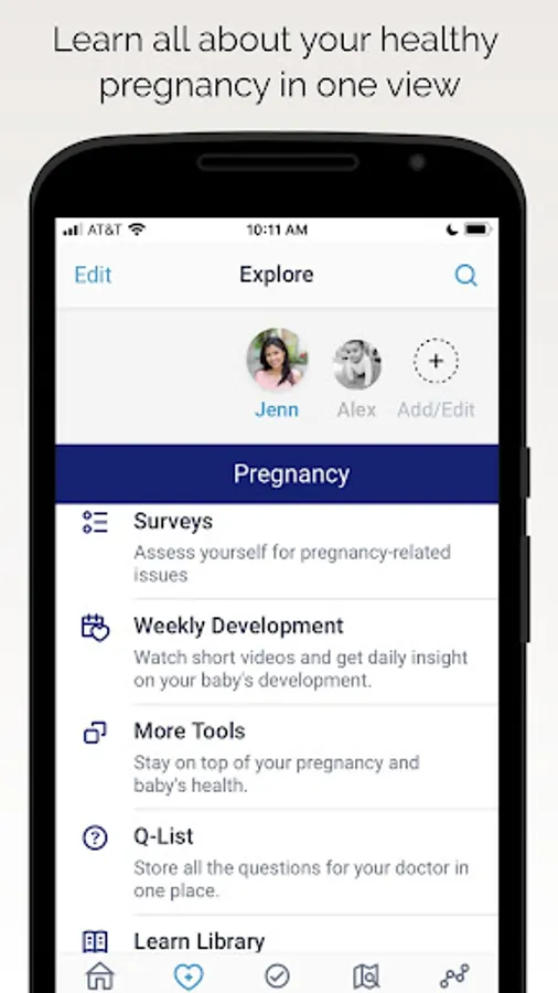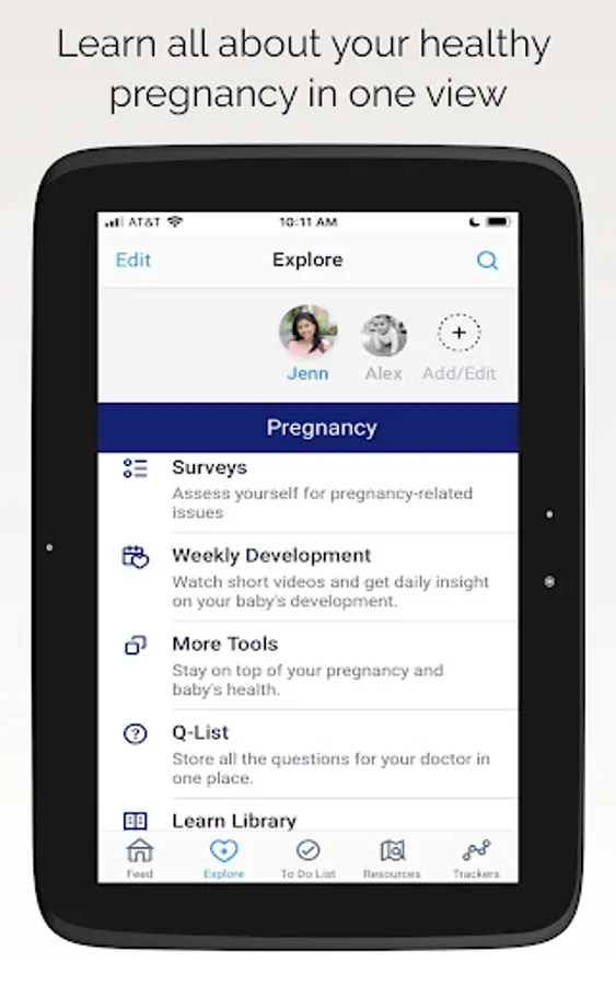 • Personalized clinical content for a week-by-week guide and daily to-dos in your personal feed
