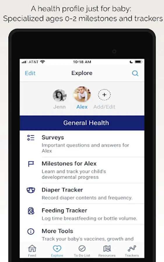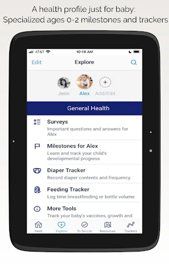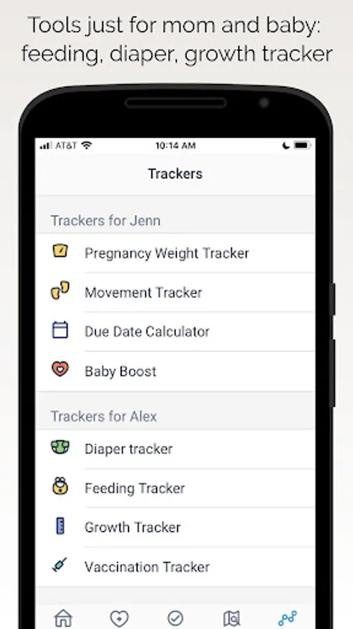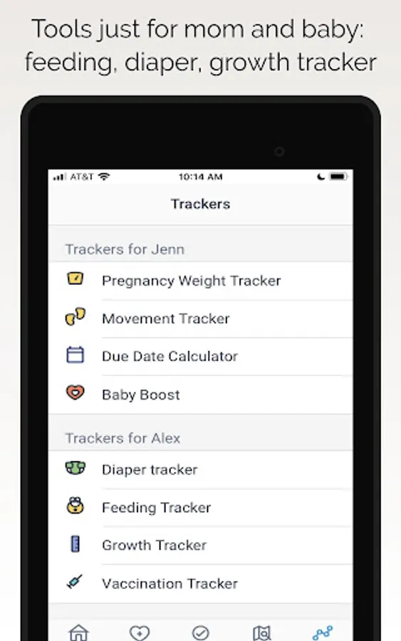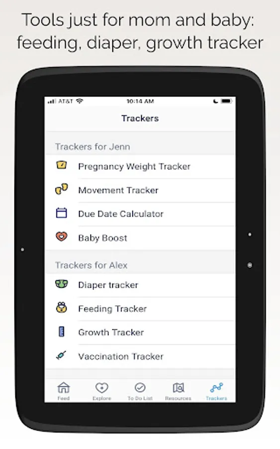 • Newborn: Growth tracker, diaper tracker, feeding tracker