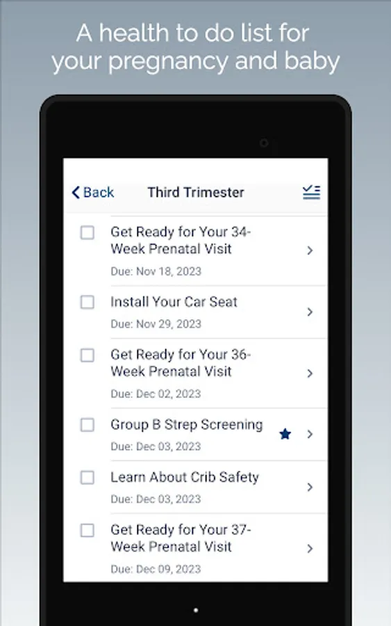To get started, use Start Smart for Your Baby to make a healthy pregnancy action plan. Just enter your due date and birth date. Then Start Smart for Your Baby will create a custom Home Feed just for you. We’ll share pregnancy health articles and a To Do List.