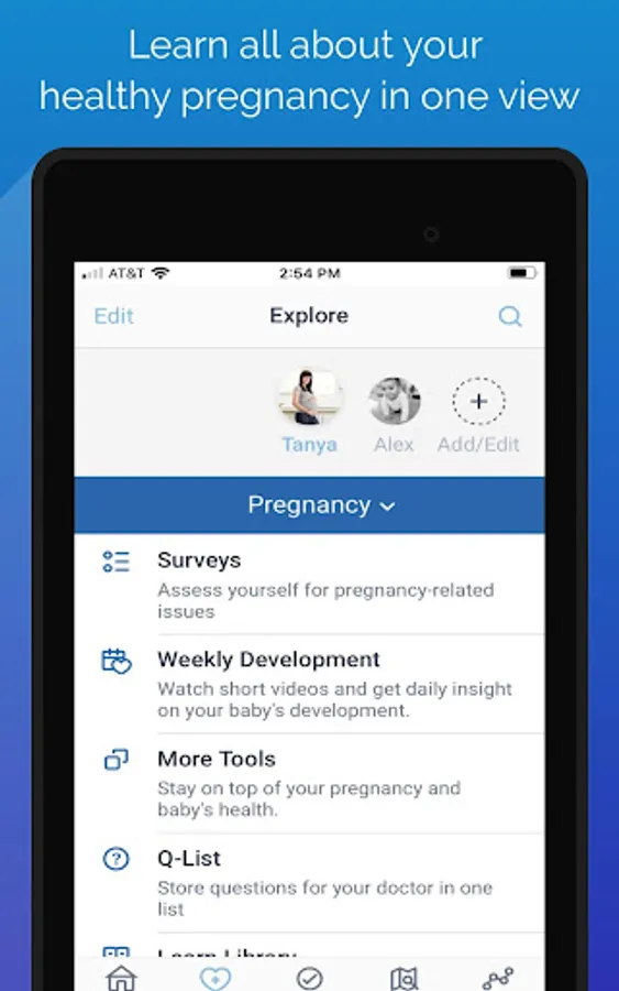 For the family, the app transitions support from pregnancy to parenthood and beyond.