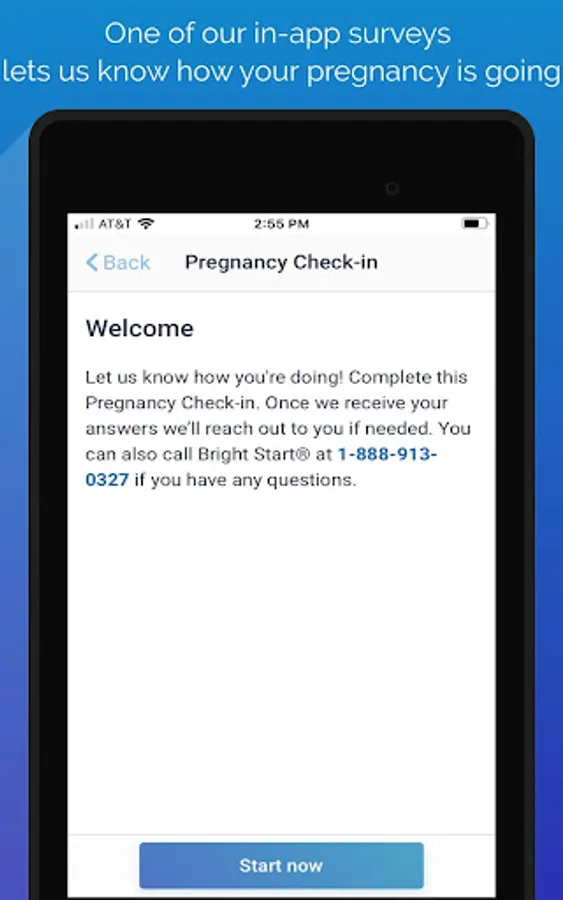 For pregnancy, Bright Start Plus is easy to use. Just enter your baby’s due date and your own date of birth. Bright Start Plus will set up your personal pregnancy milestones so you can add your health history and track symptoms. Set reminders and follow To Dos: Don’t forget your important tasks when you’re pregnant, like getting to your prenatal appointments. We’ll help remind you.