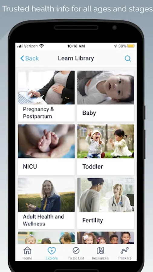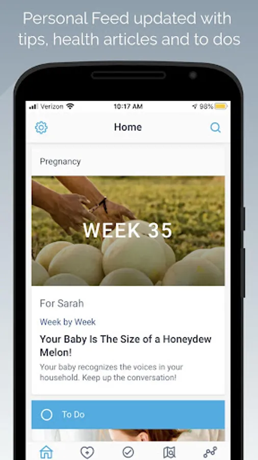 With thousands of health articles, this is the app to turn to for trusted health advice. Based on your profile, your due date and any family members in your app – you get personal content just for your health journey. From the Feed you’ll get health tips, important To Dos and access to Learn Library articles.