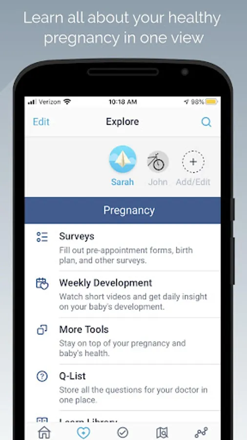 Supporting your family at every age and stage, and connecting you with the right resources at every step of your journey. In-app tools help you to navigate the unique growth of your family.