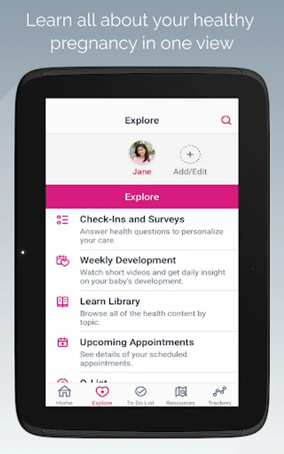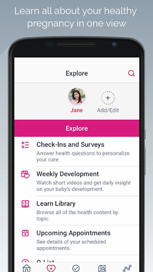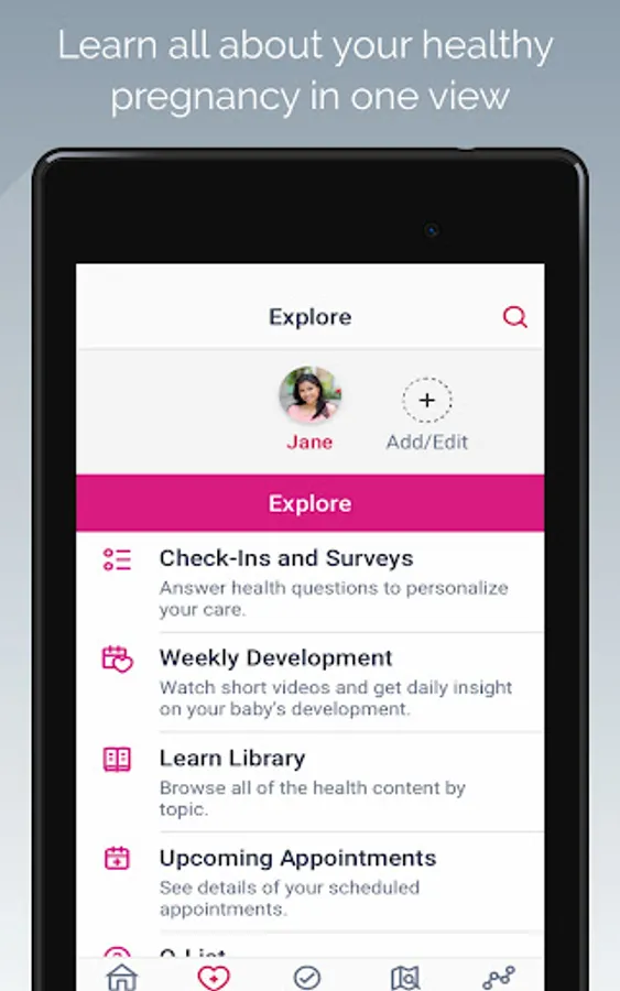 This app is designed to help keep you and your baby healthy throughout pregnancy and beyond.